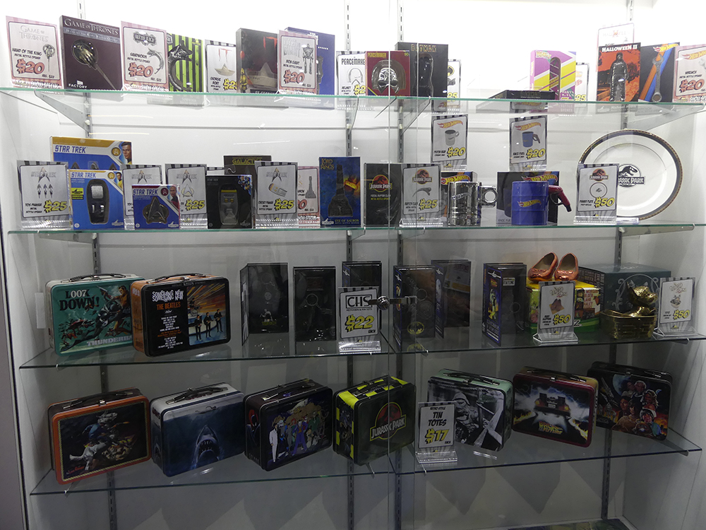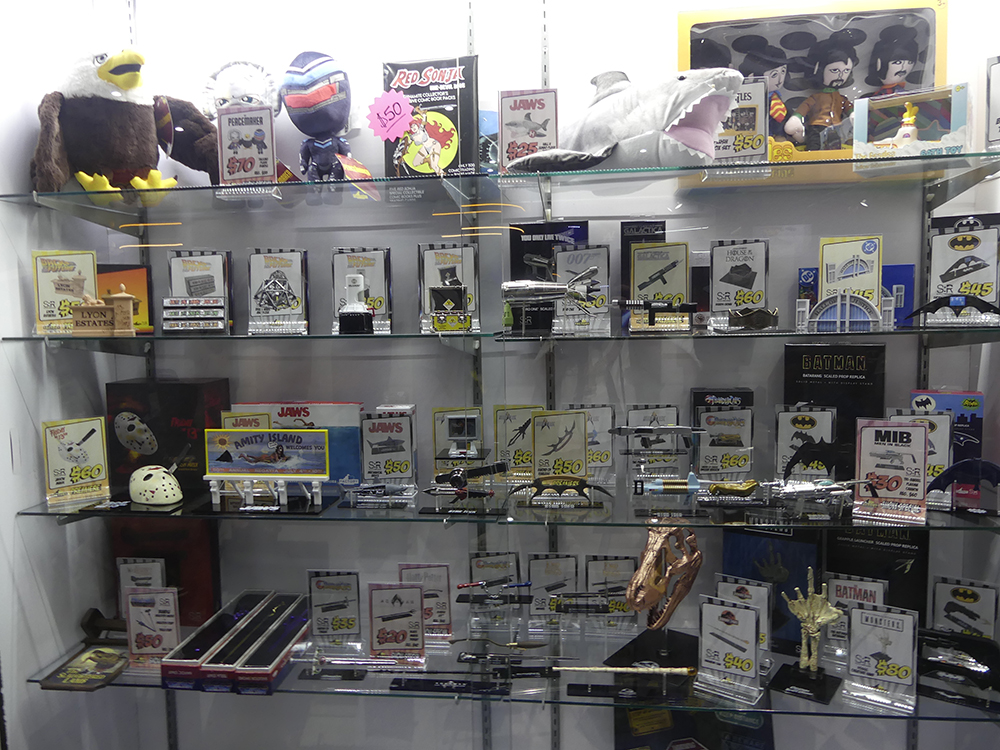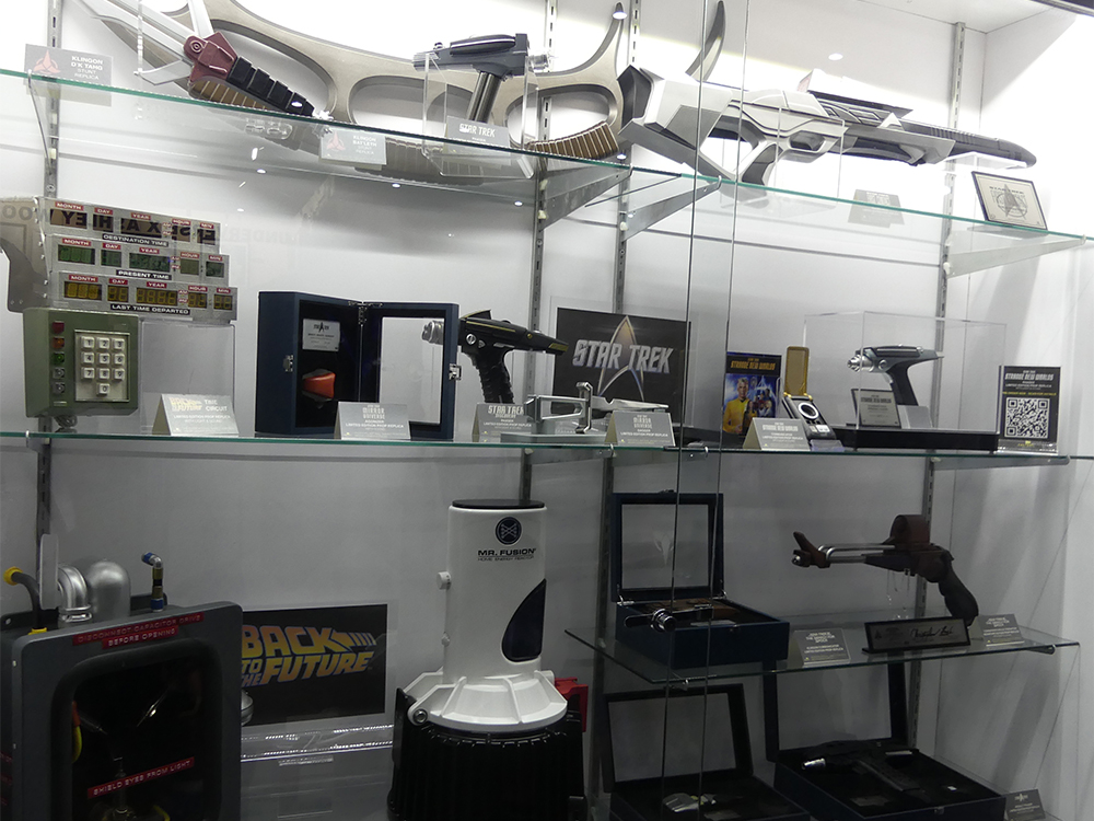 Outside the realm of science fiction, the booth was a whirlwind tour of genre history and fan passion, touching on everything from ‘80s fantasy to horror icons. The Masters of the Universe She-Ra Sword of Protection ($50) brought Princess Adora’s transformation weapon to life with solid-metal construction and a branded acrylic stand, an irresistible draw for those raised on the colorful battles of Etheria. The retro nostalgia train kept rolling with the Back to the Future Lyon Estates Scaled Prop Replica ($50), cleverly designed to feature the idealized 1955 suburbia on one side and the decayed, graffiti-marked 1985 reality on the other — a prop that quite literally flipped the script depending on your mood. Comic book fans gravitated toward the DC Hall of Justice Scaled Prop Replica™ ($45), a finely detailed recreation of the Super Friends headquarters soon to appear in the live-action Superman. Horror aficionados, meanwhile, found their fix in the chilling Friday the 13th Jason Mask Scaled Prop Replica ($60), complete with a removable, bloodied knife detail for added menace, a reminder that sometimes the smallest props carry the biggest scares.