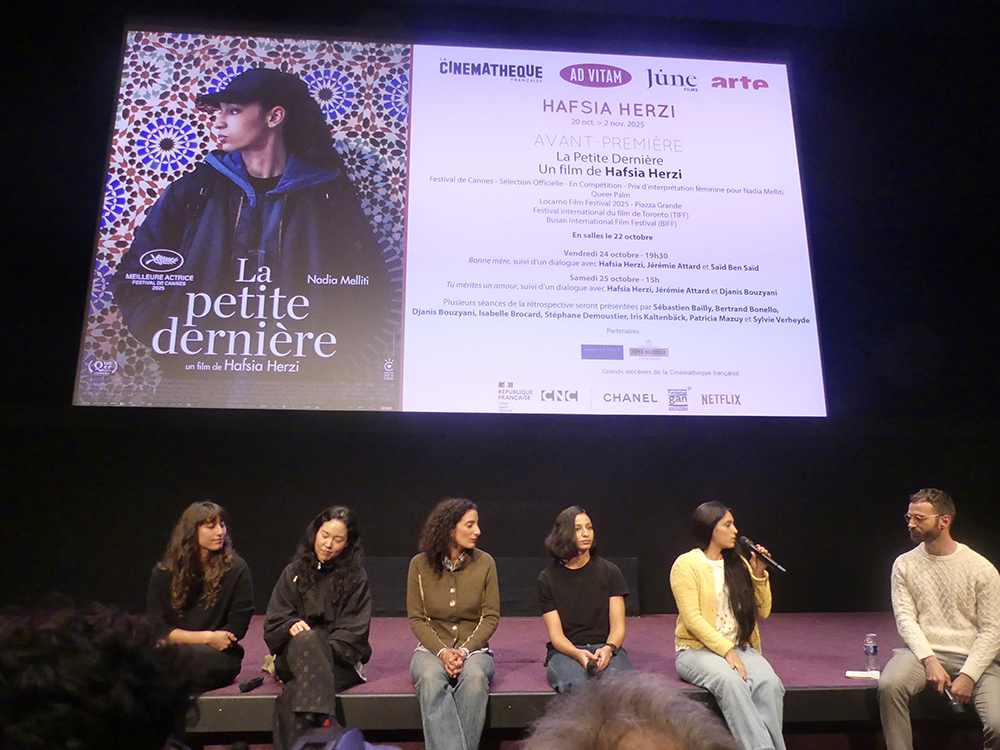 There was a gentle, restrained tension in the air on Monday, October 20, 2025, at the Cinémathèque Française. Hafsia Herzi was there to present a preview of La Petite Dernière (The Little Sister), her third feature film, which has already enjoyed exceptional success since its presentation at the 2025 Cannes Film Festival, where it won the Queer Palm and the Best Actress Award for Nadia Melliti. The screening, followed by a discussion with the director and her actresses, notably Nadia Melliti, Ji-Min Park, and Amina Ben Mohamed, took on the air of a public confession, as the film, both modest and incandescent, touches on areas rarely explored in French cinema: faith, desire, family, and the quest for identity of a young woman seeking to reconcile with herself.