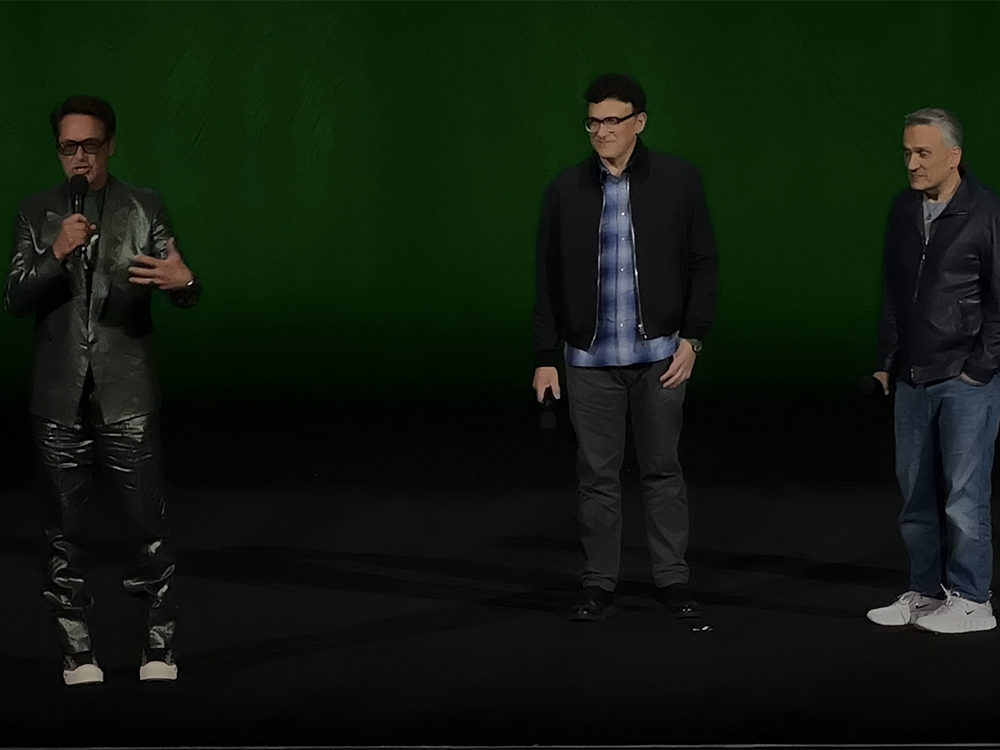Before the trailer rolled, Disney also used the platform to launch Infinity Vision, a new premium large-format certification initiative designed to highlight theaters meeting specific technical standards for screen size, laser projection, brightness, and immersive sound. While Disney positioned it as a quality-first consumer guide, the industry subtext was obvious: Avengers: Doomsday opens the same day as Dune: Part Three, and reports indicate the Marvel film will not have access to domestic IMAX exclusivity during its first weeks. Infinity Vision therefore looked like both a practical workaround and a public signal that Disney intends to compete aggressively for premium-screen audiences even without IMAX dominance. It was one of the smartest pieces of business messaging at the convention because it turned a limitation into a marketing narrative. Then came the showmanship. Kevin Feige introduced the returning Russo brothers, who were greeted as architects of Marvel’s peak crossover era. Moments later, Robert Downey Jr. stormed the stage to massive applause. Witnesses described the entrance as pure star-power theater, with some reports noting music and sustained cheers before he even spoke. Robert Downey Jr immediately leaned into mischief, joking that he wanted to reveal 37,000 spoilers. It was classic Robert Downey Jr : playful, self-aware, and perfectly calibrated to acknowledge the secrecy culture surrounding Marvel while energizing the room. CinemaCon thrives on moments that feel exclusive, and Downey understands how to turn even a throwaway joke into a headline.