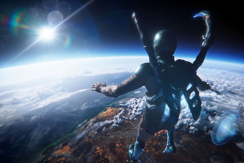 Warner Bros. Pictures today released the first images from Blue Beetle, the first-ever big-screen adaptation of the DC Universe superhero's adventures. Directed by Angel Manuel Soto, the film stars Xolo Maridueña in the title role and his alter ego, Jaime Reyes.