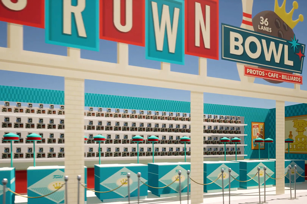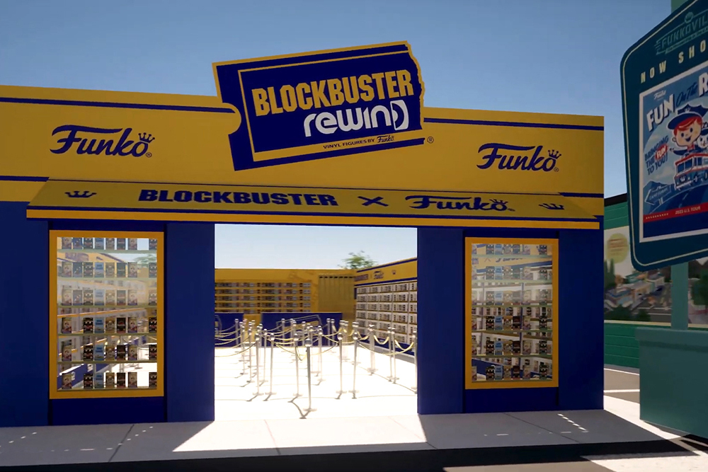 Last year's Funkoville booth garnered attention with its immersive small-town Main Street concept, featuring various storefronts dedicated to different Funko toy lines and brands. In line with the theme, this year's notable addition is Blockbuster Rewind, a faux video store designed to promote Funko's latest line of VHS-packaging themed collectibles.