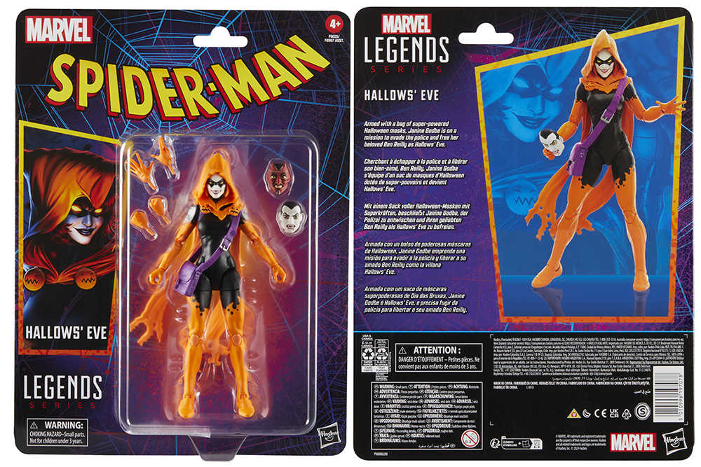 First in the spotlight is the Marvel Legends Series Hallows' Eve figure. This captivating collectible, available for an approximate retail price of $24.99, is set to hit the market in May 2024. The figure is an embodiment of craftsmanship, detailed to mirror the iconic character from Marvel's Spider-Man and Hallows' Eve comics. Standing at a 6-inch scale, Marvel Legends Hallows' Eve figure is fully articulated, with poseable head, arms, and legs. The package includes a wealth of accessories, boasting 2 sets of alternate hands, a wearable bag, and 2 Halloween masks. This extensive array of items adds depth and creativity to the figure's display options, allowing fans to recreate iconic Spider-Man moments. The figure is a testament to Hasbro Marvel's dedication to authenticity and quality. Marvel enthusiasts can start their journey towards owning this extraordinary piece by pre-ordering it from October 30th at 10am PT/7am ET at Hasbro Pulse, Entertainment Earth, and other fan channel retailers.