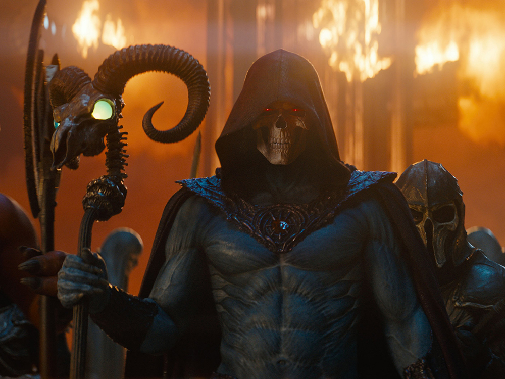 Unsurprisingly, much of the trailer’s attention gravitates toward Jared Leto’s Skeletor, and the first glimpses do not shy away from the character’s theatrical menace. Presented here as Keldor, Randor’s half-brother and leader of the Evil Warriors, Skeletor is framed less as a cartoon villain and more as a corrupted mirror of power and ambition. Alison Brie’s Evil-Lyn, introduced through a dual identity as Professor Evelyn Powers on Earth, adds an intriguing layer of deception and intelligence to the antagonistic side, hinting at a narrative that intertwines science, sorcery, and infiltration. Supporting villains such as Sam C. Wilson’s Trap Jaw, Kojo Attah’s Tri-Klops, Hafþór Júlíus Björnsson’s Goat Man, and Jon Xue Zhang’s Ram-Man are teased visually rather than explained, a smart choice that preserves mystery while reassuring fans that the iconic rogues’ gallery is being honored.
