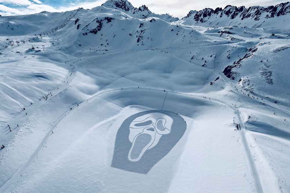 In France, the phenomenon has been equally impressive. The film recorded the best opening for the franchise since Scream 3, selling 94,345 tickets on its first day, including 15,231 admissions during midnight screenings. More than 60 cinemas across 46 cities participated in a coordinated series of global midnight previews on February 25, transforming the launch into a nationwide event. Within five days (Wednesday to Sunday), the film reached 407,540 admissions, establishing France as the third-largest market worldwide behind the United States and the United Kingdom, ahead of territories such as Germany, Australia, and Mexico. This momentum follows the robust performance of Scream VI, which drew nearly 1.2 million admissions in France, confirming that three decades after its inception, the franchise remains deeply embedded in the cultural landscape. The French campaign leaned heavily into spectacle and collective experience, culminating in a preview at the Grand Rex in Paris attended by more than 1,200 spectators and the presence of Neve Campbell, whose appearance during a special 30th anniversary screening reinforced the emotional connection between Sidney Prescott and French audiences. Adding a striking visual flourish, renowned snow artist Simon Beck created a monumental snow artwork inspired by the film in Les Arcs, an ephemeral installation widely shared across social media and press outlets, further amplifying the sense that this release was not merely a sequel but a cinematic event.