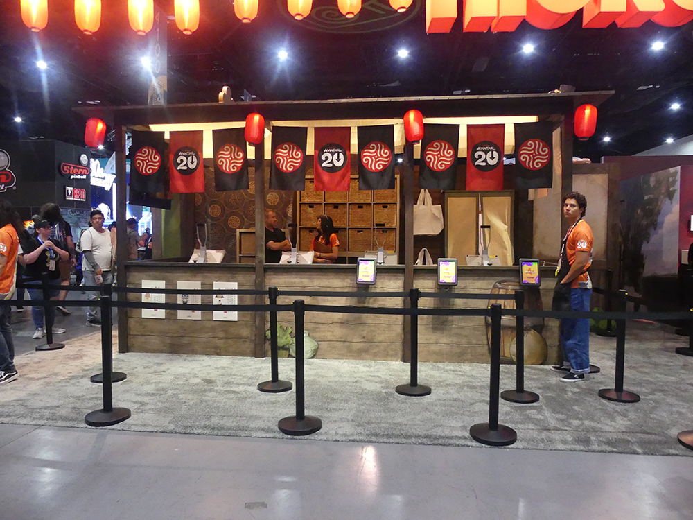 Mais la fonctionnalité la plus avant-gardiste du stand Nickelodeon cette année est sans doute l'AR « Bending Journey ». Des points de scan stratégiquement placés autour du stand permettent aux fans de débloquer des rencontres en réalité augmentée avec des personnages, de la magie élémentaire et des easter eggs que seuls les vrais aficionados d'Avatar pourront apprécier pleinement. À une époque où les conventions sont souvent saturées de présentations marketing plates, cette approche multisensorielle montre que Nickelodeon comprend son public : il veut avoir l'impression d'être à l'intérieur de l'histoire. Pour ajouter à l'exclusivité, les premiers visiteurs sont récompensés par le désormais légendaire sac fourre-tout « My Cabbages ! », contenant un vrai chou et une fiche recette tirée du prochain livre Avatar: The Last Airbender: The Official Baking Book. Ces sacs sont rapidement devenus l'un des objets de collection les plus recherchés du salon, certains fans ayant même fait la queue avant le lever du soleil pour être sûrs d'en obtenir un. À l'atelier de personnalisation, l'ambiance est tout aussi animée, les fans débattant pour choisir l'insigne de la nation qui ornera leur t-shirt de baseball ou leur sac fourre-tout personnalisé. Tribu de l'Eau, Royaume de la Terre, Nation du Feu, Nomades de l'Air... chaque choix est une affirmation d'identité au sein de la communauté de fans, et Nickelodeon a su parfaitement exploiter ce sentiment d'appartenance.