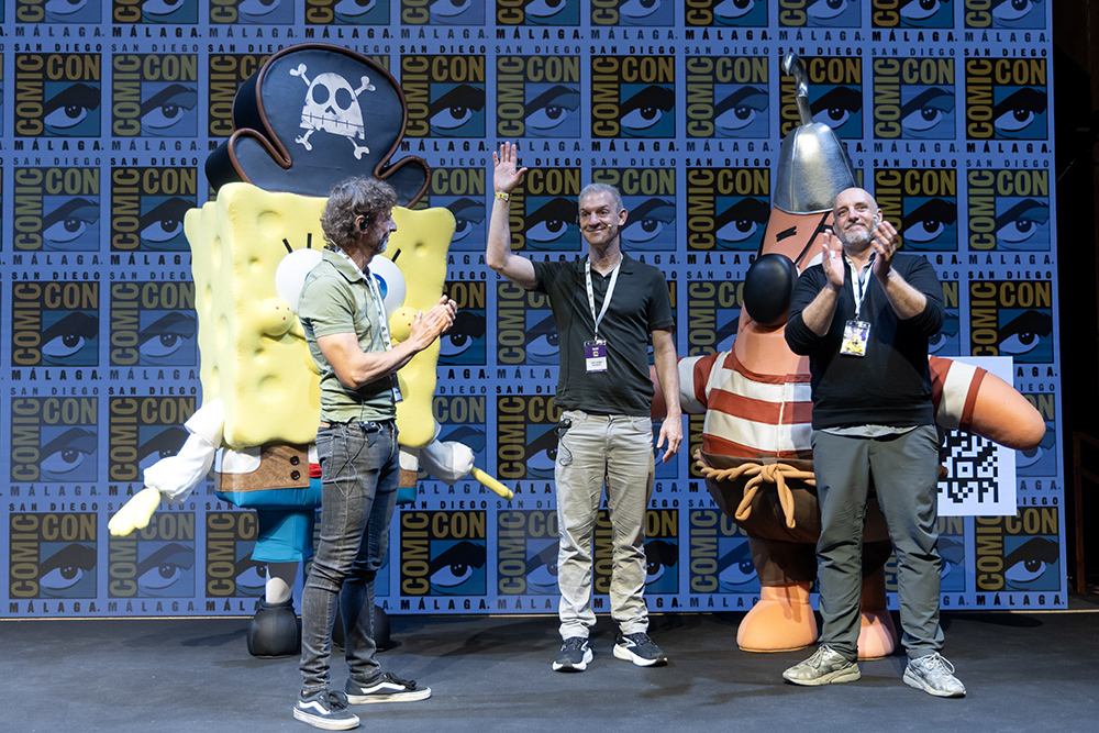 Ajoutant une dimension espagnole unique à la réunion, Alex Saudinós, la voix de longue date de Bob l'éponge dans le doublage espagnol européen, a illuminé la scène avec la même énergie contagieuse qu'il apporte dans la cabine d'enregistrement. Assis à ses côtés, César Díaz Capilla, qui prête sa voix à Patrick l'éponge en Espagne, a fait rire l'assistance en racontant les défis liés à l'adaptation de l'absurdité attachante de Patrick au public espagnol sans perdre la cadence fantaisiste qui le caractérise. Leur présence a souligné le rôle du doublage, qui est bien plus qu'une simple traduction : c'est un pont culturel qui permet aux pitreries de Bob l'éponge de résonner au-delà des frontières tout en préservant l'esprit ludique que Tom Kenny, Bill Fagerbakke et le reste de la distribution originale ont consolidé au fil des décennies. Cette synergie vivante entre le directeur créatif américain et les voix espagnoles a démontré comment Bob l'éponge est devenu une véritable icône mondiale, capable d'unir les publics des studios Nickelodeon de Burbank aux foyers de Malaga avec les mêmes phrases cultes et les mêmes éclats de rire.