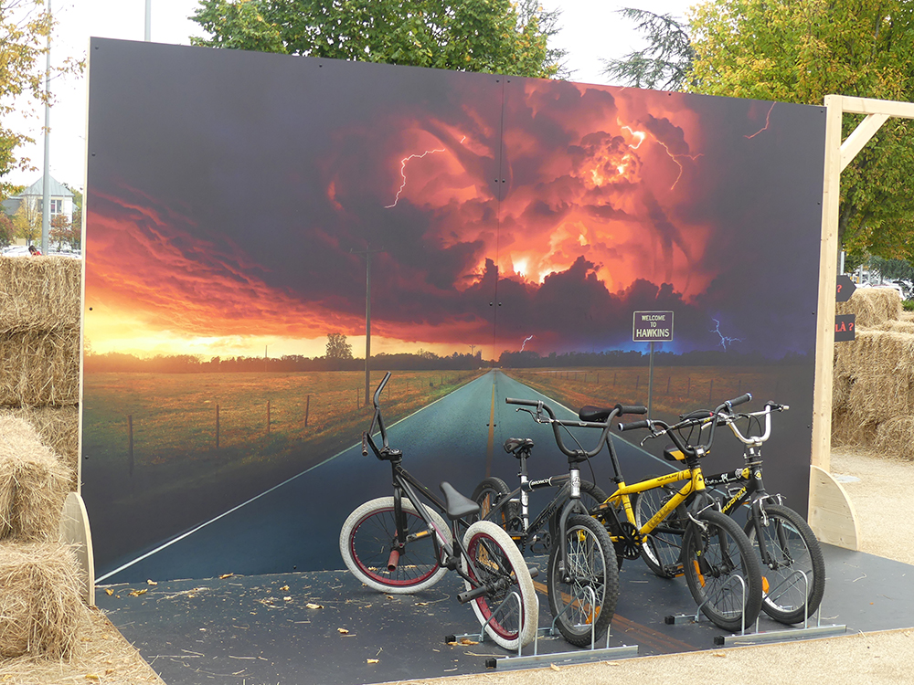 Le décor donne l'impression de passer directement à travers l'écran pour se retrouver à Hawkins. Les visiteurs affrontent l'Upside Down dans un labyrinthe spécialement construit pour l'occasion, prennent la pose sur le vélo emblématique des années 1980 ou participent à l'atelier créatif « Adopt Your Pumpkin » (Adoptez votre citrouille), un clin d'œil ludique au charme des petites villes américaines et du bricolage. À chaque coin de rue, des partenaires tels que Primark, Lush France, Starbucks France et Chupa Chups France complètent l'illusion en servant des lattes à la citrouille, du cidre de pomme, des beignets et des tartes dans la lumière chaude des lumières orange et du décor en bois. Ce qui aurait pu être une simple foire à thème devient une carte postale vivante de l'Amérique nostalgique, celle que Stranger Things évoque si vivement.