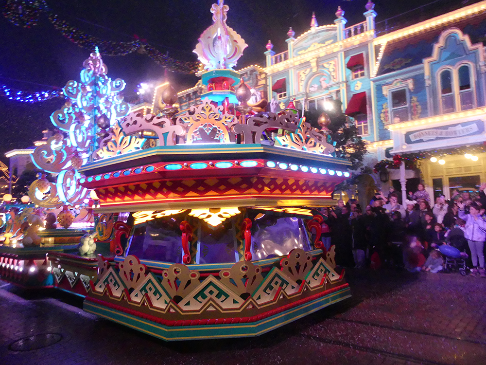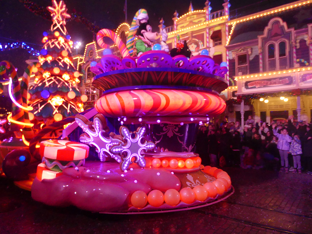L'un des aspects les plus distinctifs de la Mickey's Dazzling Christmas Parade réside dans sa double présentation : une fois pendant la journée, et une autre fois pendant la nuit. Dans la version diurne, les couleurs vives, les textures complexes des costumes et les performances fantaisistes des personnages occupent le devant de la scène, donnant vie à l'art qui se cache derrière chaque char. À la tombée de la nuit, cependant, tout le cortège renaît sous un manteau de lumière. Des milliers d'ampoules LED illuminent Main Street, synchronisées avec la musique pour créer une symphonie visuelle à la fois intime et spectaculaire. Les reflets scintillent sur la fausse neige qui tombe des toits, tandis que les rires et les acclamations des enfants se mêlent aux mélodies qui accompagnent Mickey et Minnie alors qu'ils saluent depuis leur traîneau doré. Pour de nombreux visiteurs, cette édition nocturne n'est pas seulement un spectacle, c'est un crescendo émotionnel, un moment où Disneyland Paris semble être le cœur même de Noël.