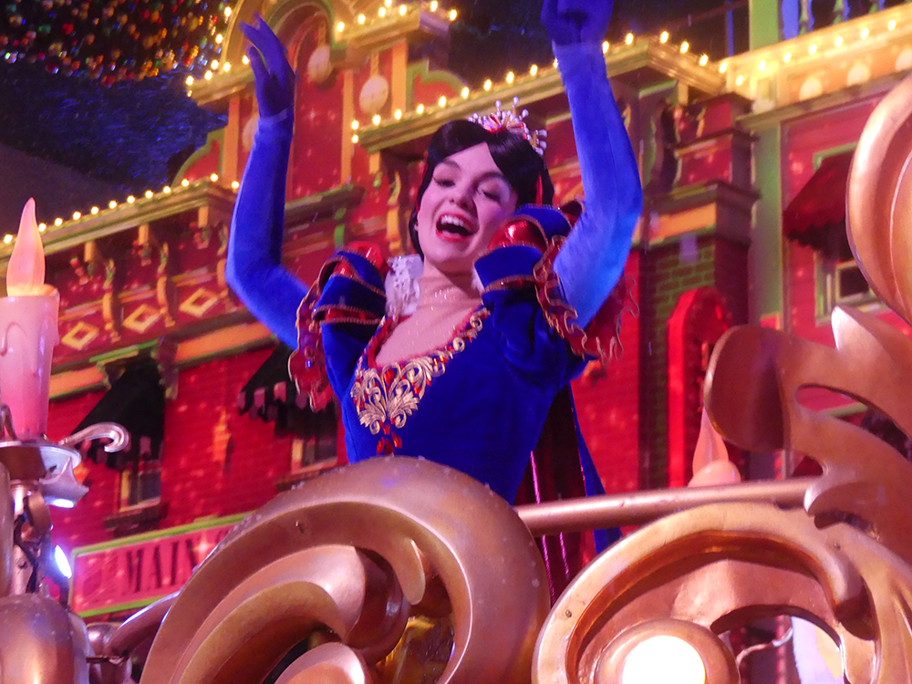 Tous les après-midi à partir du 16 novembre, la Royal Waltz of the Disney Princesses se déroule au pied du château de la Belle au bois dormant. Aurore, Cendrillon, Belle, Tiana, Jasmine, Raiponce, Ariel et Blanche-Neige glissent sur la scène dans des robes ornées de détails en cristal, accompagnées de danseurs qui font écho à la grâce du ballet classique. La chorégraphie et les costumes, illuminés par la lumière hivernale ou les projections du château, élèvent ce moment au rang de pure splendeur. C'est un hommage non seulement à l'héritage narratif de Disney, mais aussi à l'élégance intemporelle des traditions de Noël européennes qui ont inspiré la conception originale du parc.