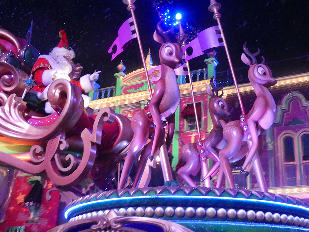 Chaque soir à partir du 21 novembre, la cérémonie d'illumination du sapin sur la place principale marquera à nouveau l'un des moments les plus émouvants de la journée. Mickey Mouse, Minnie Mouse et leurs amis se réunissent au pied du sapin de Noël imposant, accompagnés d'une chorale live dont les harmonies enveloppent le public de chaleur et de nostalgie. Les façades de Main Street, U.S.A. s'animent grâce à des projections : bougies doucement scintillantes, cottages enneigés et décorations scintillantes qui semblent danser au rythme des chants de Noël. La cérémonie fait le lien entre les générations, réunissant les parents qui se souviennent de leur premier Noël Disney et les enfants qui vivent cette même merveille pour la première fois.