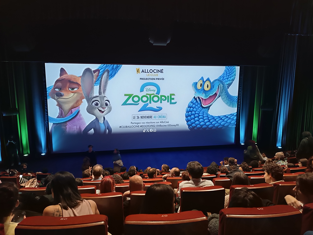 Ce mardi soir, le Forum des Images accueillait la dernière projection de l'année du Club Allociné. 500 spectateurs ont pu découvrir le formidable Zootopie 2, un feel good movie sur la tolérance. La soirée a commencé par le traditionnel photocall. Pour le cocktail, des biscuits en forme de lapin et de tête de renard avaient été créé. Avant la projection du film en version française, la présentatrice a rappelé les différentes projections privées, master class, rencontres de professionnels du cinéma et des séries qui ont eu lieu cette année, comme Running Man, Mickey 17, Arco,... Zootopie 2 est la suite du premier opus, sorti il y a 9 ans. C'est une réussite. Ce dessin animé repose sur un scénario intelligent, centré sur la tolérance, avec différents niveaux de lecture. Le film est rythmé, drôle, émouvant, avec des clins d'oeil à d'autres films. L'animation est belle avec une multitude de personnages.