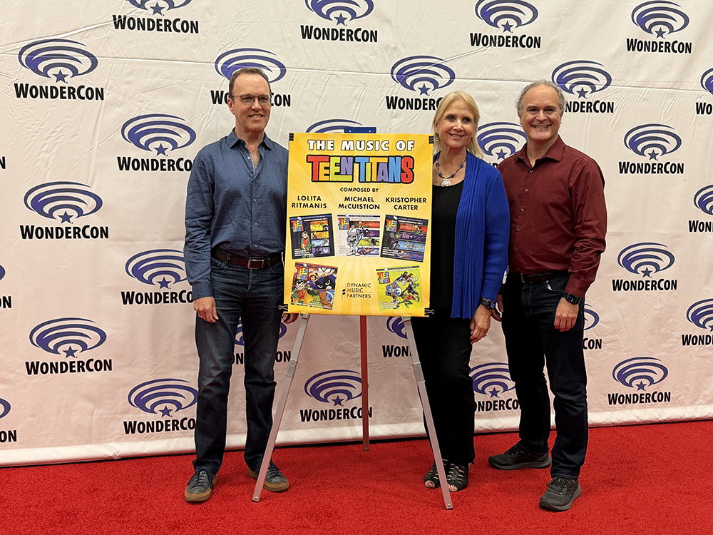 La présence des compositeurs au WonderCon s’accompagnait d’une exposition visuelle dédiée intitulée « The Music of Teen Titans », mise en avant dans l’espace photo et présentant les pochettes de la bande originale aux côtés des noms de Lolita Ritmanis, Michael McCuistion et Kristopher Carter, soulignant l’importance de la musique en tant qu’élément déterminant de l’identité de la série, tandis que les clichés pris sur le tapis rouge pendant l’événement réalisés par la photographe Barbara Henderson mettaient en avant le trio individuellement et collectivement, reflétant à la fois la reconnaissance professionnelle qu’ils ont acquise et l’enthousiasme constant suscité par leur contribution à l’héritage de la série.