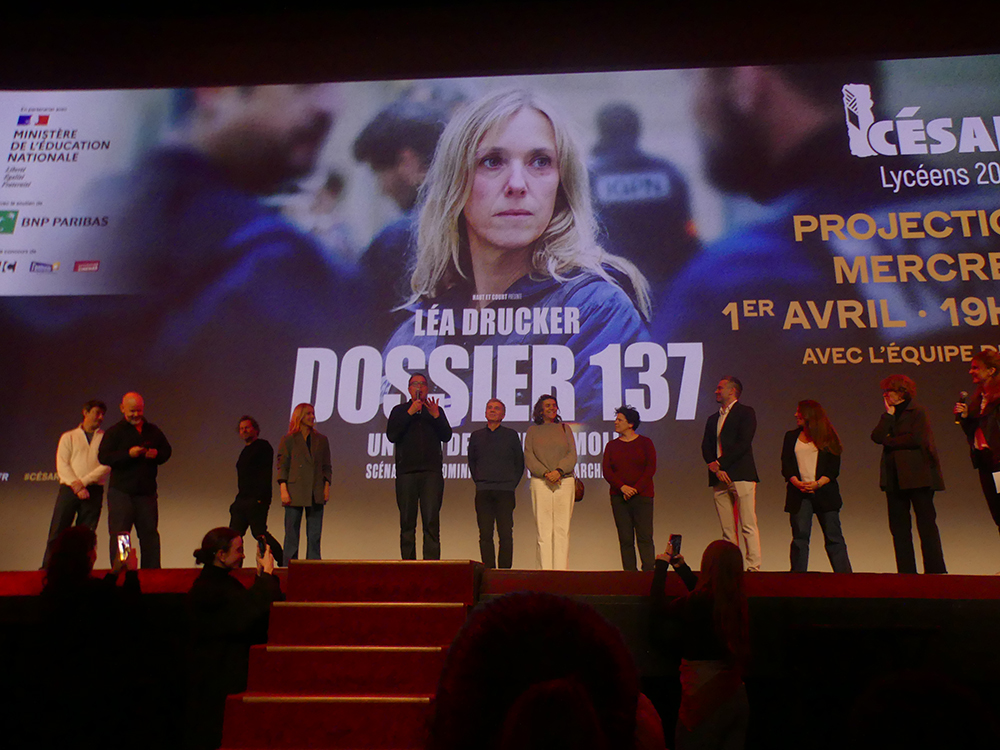 Le 1er avril 2026, le Grand Rex à Paris a accueilli une projection du film Dossier 137, réalisé par Dominik Moll, dans le cadre des César des Lycéens 2026, un événement qui illustre parfaitement comment le cinéma peut encore créer un lien entre les films et un jeune public en quête d’histoires ancrées dans la réalité. Le même jour, grâce au soutien de BNP Paribas, le film Dossier 137, lauréat du César des Lycéens 2026, a été présenté lors d’une projection publique spéciale en présence de l’équipe du film, renforçant ainsi le solide soutien institutionnel et culturel dont bénéficie cette initiative. Organisée par l’Académie des César et le ministère de l’Éducation nationale, cette projection gratuite a réuni 2 500 participants (principalement des élèves, des lycéens et des jeunes invités par le ministère et BNP Paribas) dans le cadre d’un engagement plus large visant à garantir l’accès à l’éducation artistique et culturelle pour les jeunes générations. L’implication du Centre national du cinéma et de l’image animée, de la Fédération nationale des cinémas français et de l’Entraide du cinéma et des spectacles souligne encore davantage l’effort collectif visant à multiplier les occasions pour le public de rencontrer les lauréats des César, faisant écho à des initiatives telles que « Un César à l’école », qui invite les lauréats à renouer le contact avec les élèves dans des lieux d’enseignement. Cette projection a attiré un large public dans l’une des plus grandes salles d’Europe pour un film sélectionné par 2 517 lycéens issus de 115 classes à l’issue de plusieurs semaines de discussions et de débats, confirmant l’intérêt suscité par cette œuvre bien au-delà des cercles critiques traditionnels et soulignant la capacité du film à susciter une réflexion collective sur des questions profondément contemporaines.