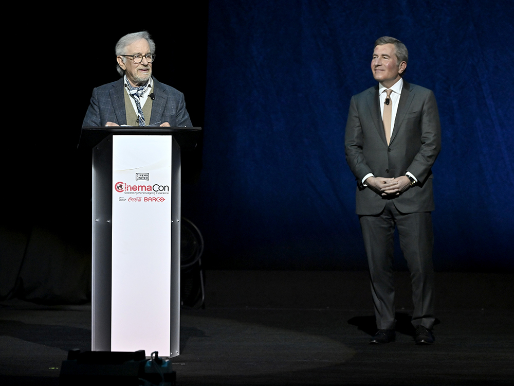 Puis la salle a reçu un autre choc majeur : Colman Domingo a présenté Steven Spielberg, qui faisait sa première apparition à CinemaCon. Le réalisateur légendaire a reçu le prix America 250 de la Motion Picture Association, le directeur de la MPA, Charles Rivkin, louant la façon dont Spielberg incarne ce à quoi beaucoup de gens pensent lorsqu’ils pensent au cinéma. Le discours de Steven Spielberg a été l’un des moments les plus émouvants de la soirée. Il a évoqué son enfance, passée devant les écrans lumineux du salon, mais a expliqué que tout avait changé lorsque ses parents l’avaient emmené au cinéma, où le public pouvait être à la fois effrayé, enthousiasmé et attristé. Pour les exploitants de salles, il ne s’agissait pas de nostalgie pour la nostalgie ; c’était une défense concise de l’expérience collective du cinéma.