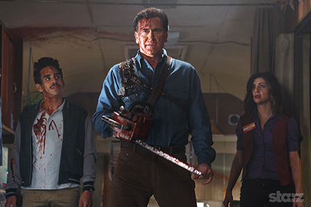 Ash vs. Evil Dead est une série américaine créée par Sam Raimi qui prolonge la trilogie Evil Dead. Durant la convention du San Diego Comic-Con 2014 Sam Raimi, annonça qu’il travaillait sur une nouvelle série permettant de prolonger l’univers Evil Dead. Celle-ci sera composée d’épisodes de vingt cinq minutes. Il annonça également que cette série était possible car Bruce Campbell, éternel Ash, avait accepté de reprendre le rôle qui le rendit célèbre. Le reste du casting sera composé des comédiens : Lucy Lawless, Dana DeLorenzo, Ray Santiago, Jill Marie Jones. Le tournage s’est déroulé en Nouvelle-Zélande et le pilote sera réalisé, produit et co-scénarisé par Sam Raimi. Le premier épisode de la série Ash vs Evil Dead sera diffusé pour Halloween le samedi 31 octobre à 21h00 sur la chaine STARZ . La série sera composée de dix épisodes.