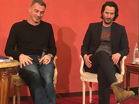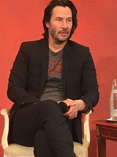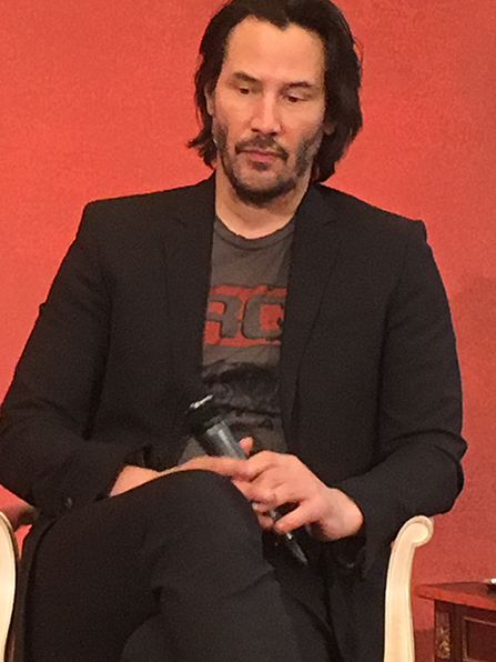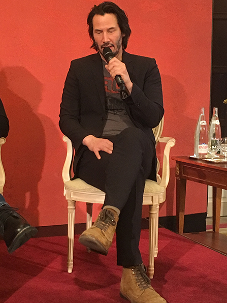 Keanu Reeves: oui c'est vrai vous avez raison. J'ai été très chanceux ces deux dernières années, travailler d'une part évidement sur John Wick chapter 2 mais aussi comme vous l'avez mentionné sur the Néon Demon de Nicolas Winding Refn mais aussi Ana Lily Amirpour. Bref, une force qui me convient parfaitement parce que j'ai toujours voulu en réalité explorer différents genres.