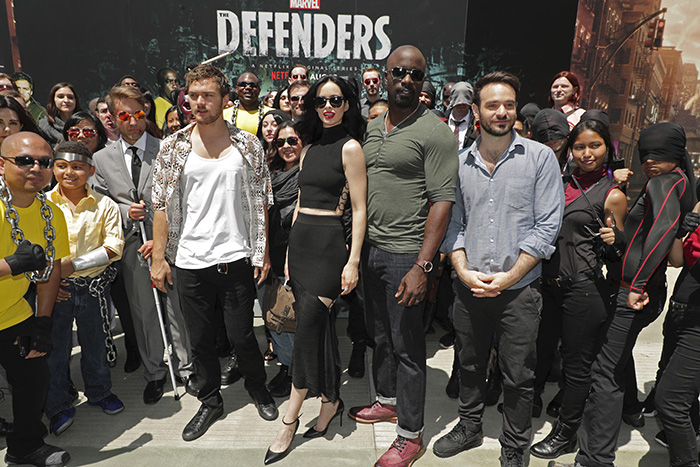 Marvel’s The Defenders réunis Charlie Cox (Matt Murdock/Daredevil), Krysten Ritter (Jessica Jones), Mike Colter (Luke Cage) et Finn Jones (Danny Rand/Iron Fist). Le casting inclus par l’actrice nommée aux Oscars, Sigourney Weaver (Alexandra), Elodie Yung (Elektra), Scott Glenn (Stick), Deborah Ann Woll (Karen Page), Elden Henson (Foggy Nelson), Carrie-Anne Moss (Jeri Hogarth), Rachael Taylor (Trish Walker), Eka Darville (Malcolm Ducasse), Simone Missick (Misty Knight) et Jessica Henwick (Colleen Wing). Les producteurs exécutifs de Marvel’s The Defenders sont Marco Ramirez et Doug Petrie au côté de Jeph Loeb de Marvel TV. La série est produite par Marvel Television en association avec ABC Studios pour Netflix.
