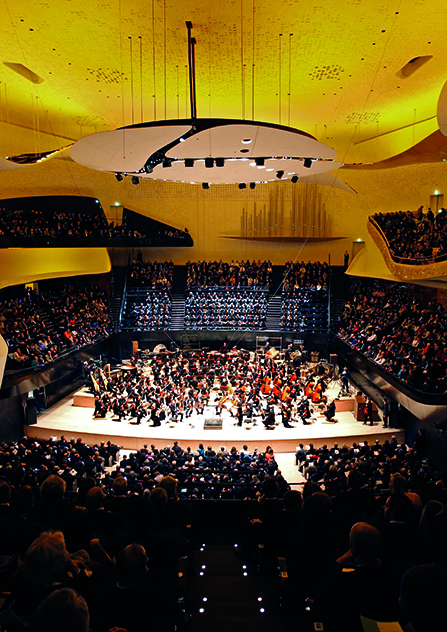 La Philharmonie de Paris réunit un nouveau bâtiment conçu par Jean Nouvel et l’actuelle Cité de la musique, signée Christian de Portzamparc. Avec ses nombreux espaces éducatifs, de répétitions et d’exposition; ses formations résidentes ou associées et un projet artistique innovant, elle constitue un pôle culturel unique au monde favorisant l’appropriation de la musique par les publics. Sa grande salle de concerts aux formes et à l’acoustique exceptionnelle permet d’accueillir les plus grandes formations symphoniques nationales et internationales. Sa modularité o re également les meilleures conditions pour les musiques actuelles, les musiques du monde, la danse ainsi que pour développer d’ambitieux projets pluridisciplinaires mêlant musiques et images. Située dans un Est parisien en plein développement, trait d’union entre la capitale et ses environs, la Philharmonie se veut un lieu de rassemblement.