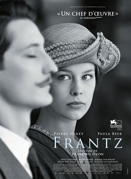 Synopsis : Au lendemain de la guerre 14-18, dans une petite ville allemande, Anna se rend tous les jours sur la tombe de son fiancé, Frantz, mort sur le front en France. Mais ce jour-là, un jeune Français, Adrien, est venu se recueillir sur la tombe de son ami allemand. Cette présence à la suite de la défaite allemande va provoquer des réactions passionnelles dans la ville.