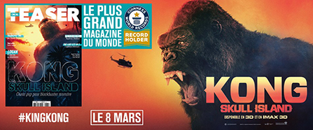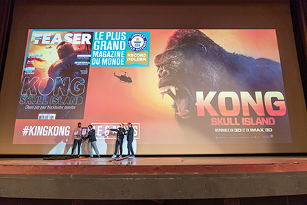 Un ÉNORME numéro de CINÉMATEASER a été spécialement créé à l'occasion de la sortie en salle de KONG SKULL ISLAND et a battu le Guinness World Records du plus grand magazine du monde (validé par le Guiness Book) avant-hier lors de l’avant-première du film qui a eu lieu au Grand Rex.