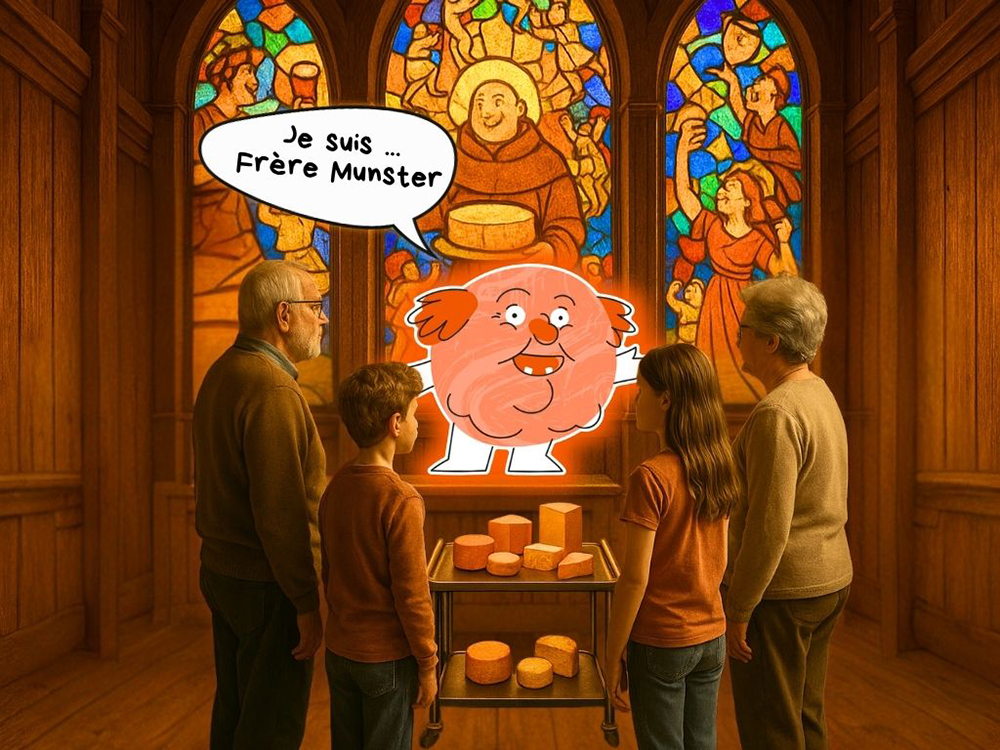 Mais l’une des grandes forces de La Cheese Experience, c’est son univers narratif. Tout au long du parcours, les visiteurs croisent les “Cheesiz”, des personnages-fromages hauts en couleur, drôles, parfois un peu barrés et totalement attachants. On pense déjà à Blue Roquefort, rockeuse à la voix rauque et au caractère vibrant, ou à Frère Munster, moine un rien trop porté sur la bouteille et adorable malgré lui. Ces personnages donnent un ton léger et accessible, parfait pour une sortie en famille ou entre amis. Et comme chaque groupe vote à la fin pour son Cheesiz préféré, l’expérience se termine sur une note participative qui renforce encore cette impression d’aventure commune.