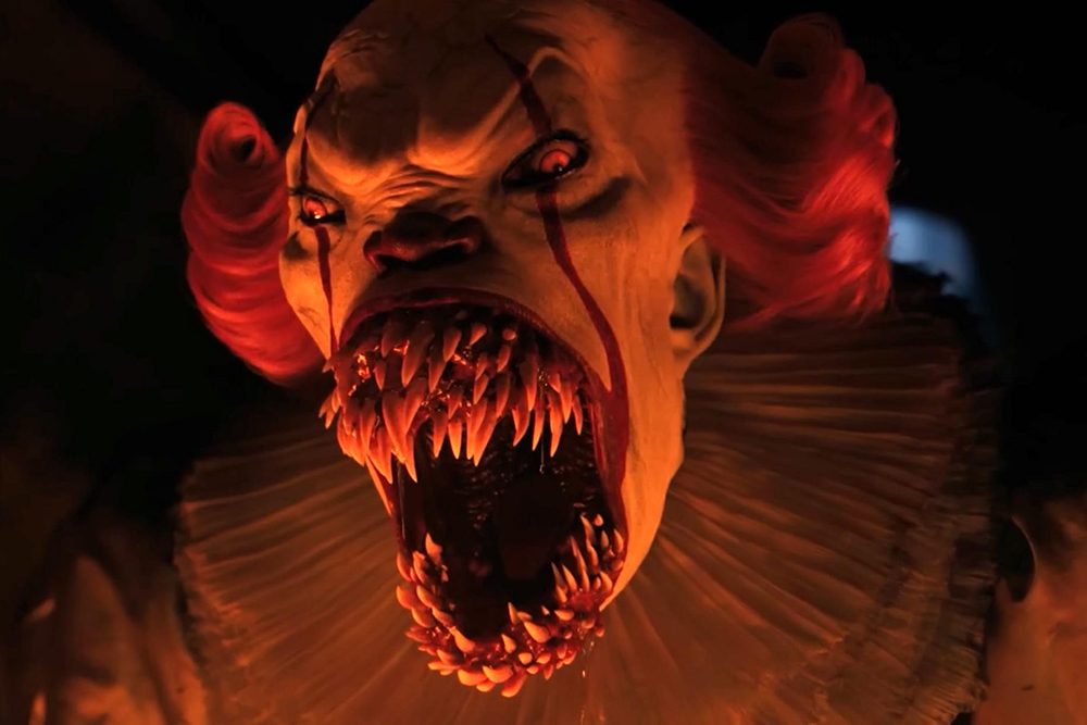 Q : C'est surprenant quand vous ouvrez la porte de la scène et que ce nouveau visage apparaît, avec le maquillage familier, mais on peut voir la ligne de la calotte chauve. C'est presque comme une version « Spirit Halloween » de Pennywise.