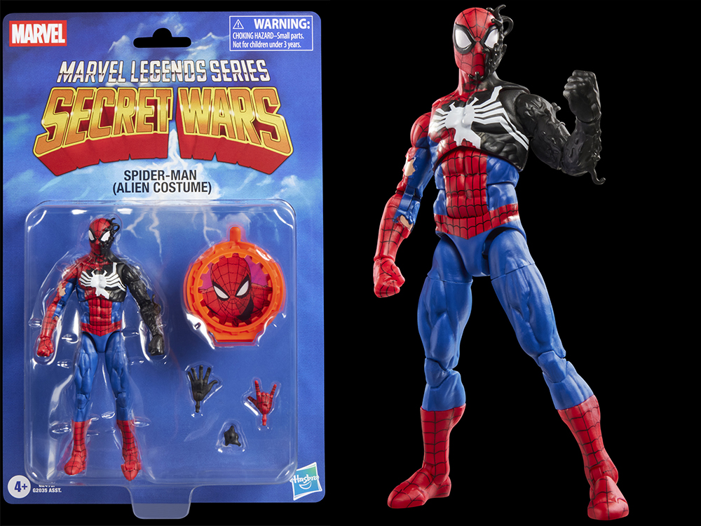 Marvel's Secret Wars II et Marvel Comics. Reflétant l'intrigue dans laquelle le costume endommagé de Peter Parker est remplacé par un mystérieux costume symbiote entièrement noir, la figurine présente des détails haut de gamme fidèles au design de la bande dessinée. Les collectionneurs peuvent s'attendre à deux mains interchangeables pour améliorer les options de pose, ainsi qu'un bouclier « secret » inspiré de la gamme vintage Secret Wars. Dans la lignée de la tradition Marvel Legends, la figurine est dotée d'une grande articulation pour un affichage dynamique et une présence remarquable sur les étagères.
