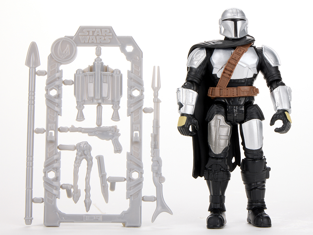 L'assortiment comprend The Mandalorian (11,4 cm), Grogu (3,3 cm) et Zeb Orrelios (11,4 cm), chacun avec des accessoires, des articulations et des supports de rangement réutilisables.
