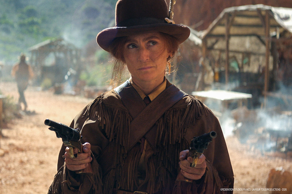 La bande-annonce met aussi en lumière la galerie de figures emblématiques qui gravitent autour de Lucky Luke, enjeu toujours délicat dans cet univers où les seconds rôles sont aussi attendus que le héros lui-même : Jérôme Niel apparaît en Joe Dalton avec une nervosité grinçante qui semble jouer sur la frontière entre menace et comique, Camille Chamoux campe une Calamity Jane à la présence affirmée, tandis que Victor Le Blond prête ses traits à Billy the Kid ; en quelques séquences, le montage de Romain Imbert orchestre ces apparitions comme autant de promesses d’interactions explosives, laissant entrevoir des alliances inattendues, des confrontations ironiques et ce mélange si particulier d’action et d’humour qui constitue l’ADN de Lucky Luke depuis Morris et René Goscinny.